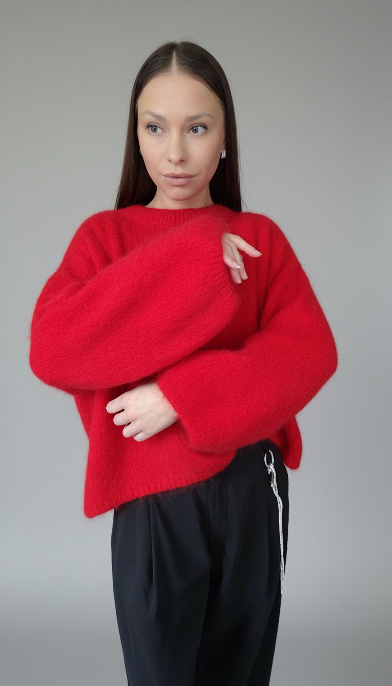 40 % mohair, 28 % akryl, 22 % polyamid, 10 % ull