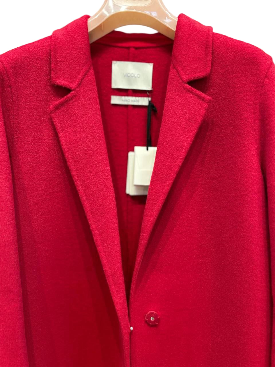 Ullkåpe i håndlaget kvalitet fra det italienske merket Vicolo. Kåpen har støv- og vannavstøtende effekt, utvendige lommer og lukkes med en skjult knapp. Modellen er uten fôr på innsiden, noe som gir en lett og moderne silhuett.