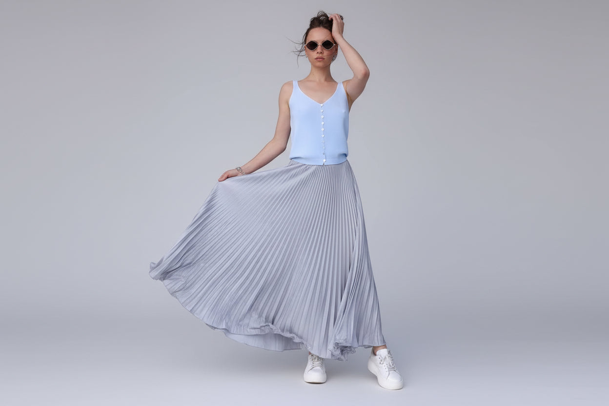 Langt plissert skjørt